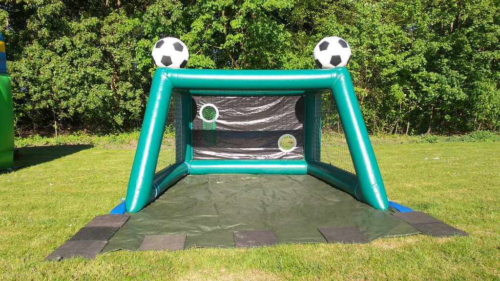 Die aufblasbare Riesentorwand wird gerne als Ergänzung zu einer Hüpfburg/ zur Riesenrutsche genutzt. Sie kann aber auch einzeln ausgeliehen werden. Sie besitzt ein großes Dach und könnte somit als (zusätzliche) Überdachung auf Ihrer Veranstaltung genutzt werden.
